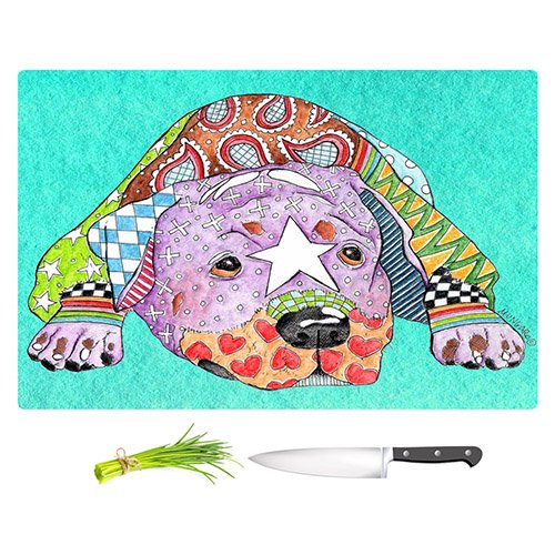 DiaNoche Designs CB-MarleyUngaroRottTurquoise2 Marley Ungaro Rottweiller Dog Turquoise Unique Kitchen Slicing Dicing Bar Artistic Decorative Cutting Boards from, Large 15" x 11"