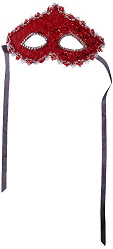 Geek-M Halloween Costume Lace with Rhinestone Venetian Women Masquerade Mask, Red