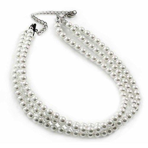 -. Title : Bling Jewelry Simulated Pearl Three Strand Bridal Necklace Rhodium Plated