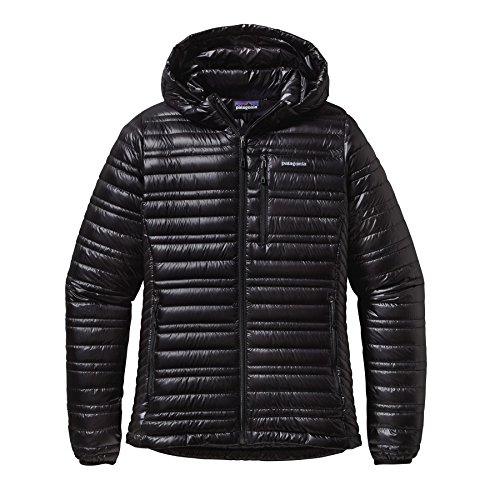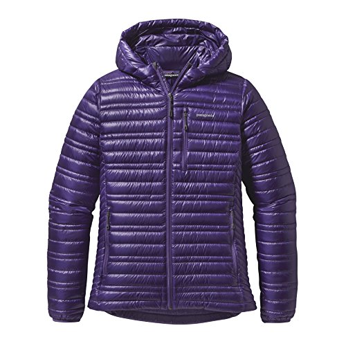 Apart from its hoodless counterpart, the Women's Ultralight Down Hooded Jacket is Patagonia's lightest down jacket for any alpine endeavor. Pertex Quantum provides half of the weight and twice the strength of most nylon shells, and it protects the lofty warmth inside with reliable water-resistance and complete windproofing. Patagonia's 800-fill down insulation comes from birds that were never force-fed or live-plucked, and it has a higher loft than most down jackets. The Ultralight Down Jacket stows inside its chest pocket for compact storage in your backpack.Feature
