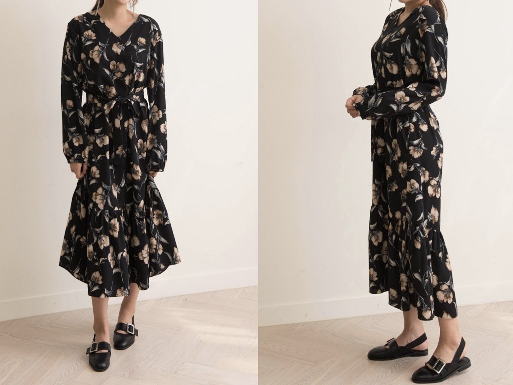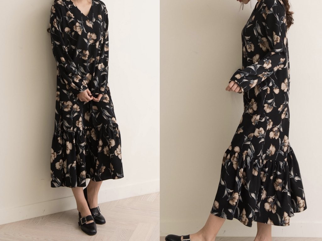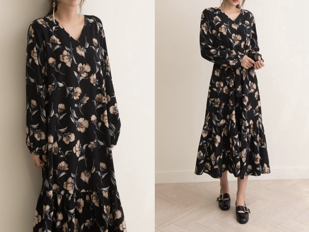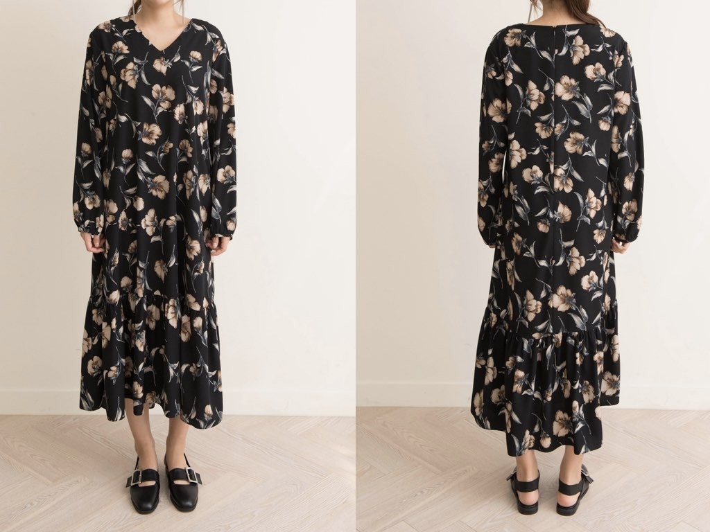 Vネックのロングワンピースです。1枚で着れて楽チンなのに、女性らしさも感じられるアイテムの「ワンピース」。ボトムスやレギンスなどを合わせたレイヤードスタイルも素敵ですね。商品は、とても丁寧なつくりとなっています。1.基本情報色:2色展開(ネイビー/ブラック)サイズ:Free素材:ポリエステル製造国:Korea2.サイズ情報肩幅:43cm身幅(胸断面):50cm腕の長さ:60cm着丈(前):121cm(サイズは計る方法に応じて±2〜3cmの誤差があります。ご了承お願い致します)モデル着用サイズ:F※着用モデル(163cm、体重47kg、足のサイズ24.5cm)3.その他の情報厚み:中間透け感:なし伸縮性:なし裏地:なし洗濯方法:ドライ(クリーニング)[注意事項]お取り寄せ商品は、海外より仕入れるため納品まで約10日前後いただきます。また店舗でも販売しており、在庫切れになる場合もございます。ご了承お願い致します。