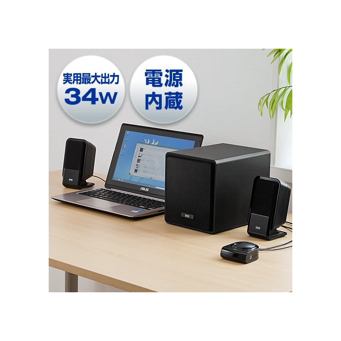 산와 다이렉트 PC스피커 PC 스피커 2.1ch 서브우퍼 탑재에 박력의 중저음 34W의 하이 파워 스피커 미니 플러그 접속 400-SP005