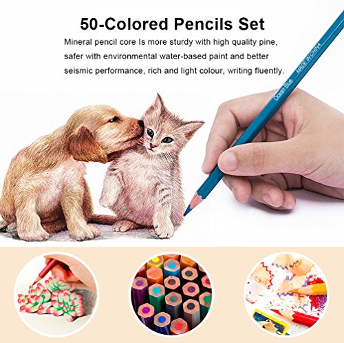 - 【50 Colored Pencils Set】- All watercolor pencils are 178mm (above 7-inch) long, Pencil Diameter : 7.2mm(0.28"). 50 individual colors provide a wide range of options. Colors include white, red, blue, yellow, orange, green, purple, white, black and many more. Perfect for releasing stress with adult coloring books, mandalas, drawing & sketching.