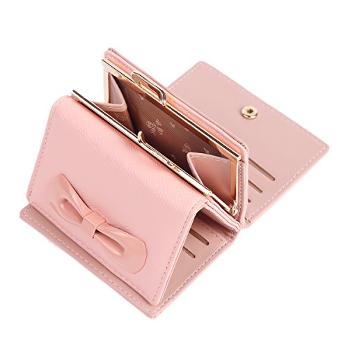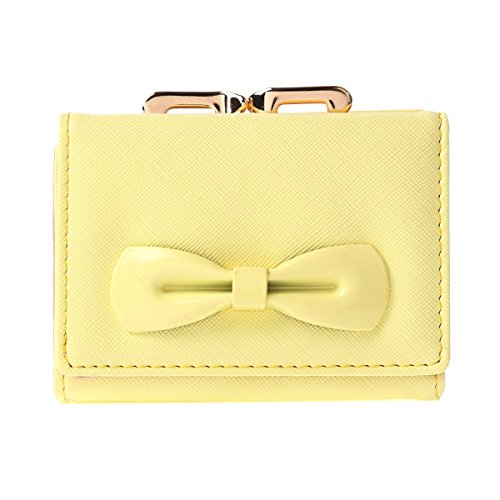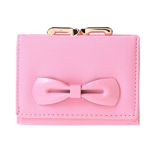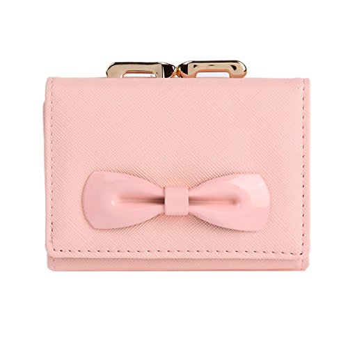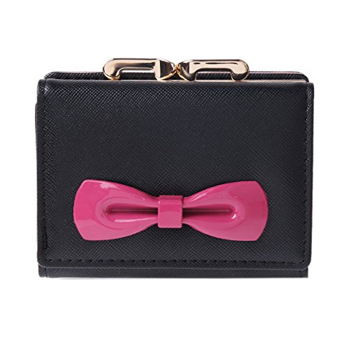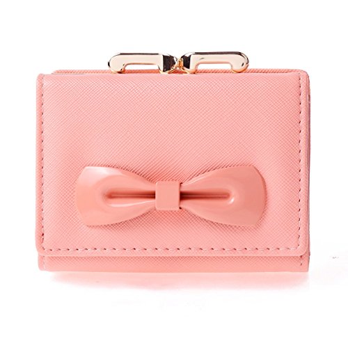 -. Binding : Apparel -. Brand : Damara -. ClothingSize : Small -. Department : womens -. Feature : Made of PU / Snap closure with double metal frame,kiss lock fastened / 2 photo/ID windows,8 card slots,1 main layer under the cards slots for your currency,bills or tickets. / A small pocket for extra slim items/bills with a kiss lock snap. / Measurement approximately: bag length 10.6cm (4.2 inches); width 8.1cm (3.2 inches); height 3.2cm (1.2 inches). -. ProductGroup : Apparel -. ProductTypeName : ACCESSORY -. Size : Small -. Title : Damara Womens Metal Bowknot Metal Snap Kiss Lock Wallet