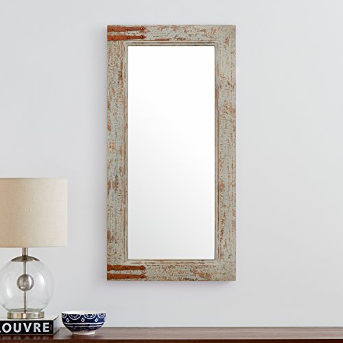 This mirror's clean, simple lines allow it to blend with modern and classic décor, while the frame has the appearance of weathered wood, giving it a vintage touch. Its versatile size makes it easy to place in a bedroom, hallway or living room.