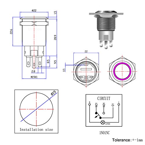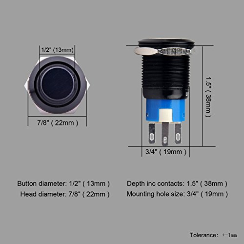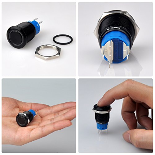 Ulincos Momentary Pushbutton Switch U19C3 1NO1NC Black Metal Shell with 12V White LED Ring Suitable for 19mm 3/4" Mounting Hole (White)