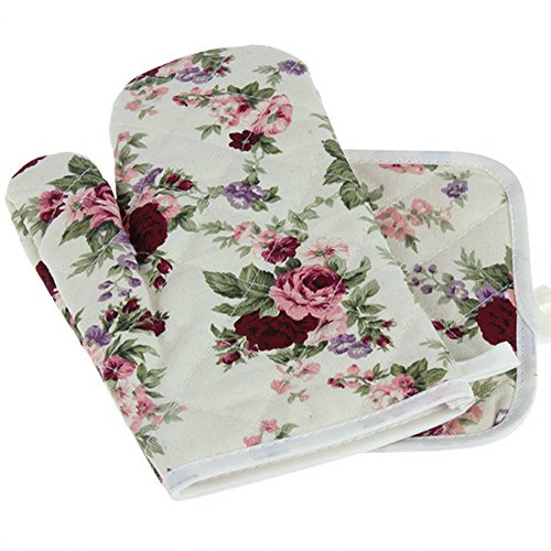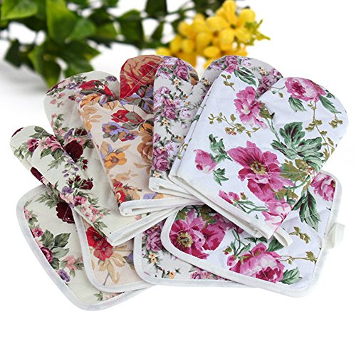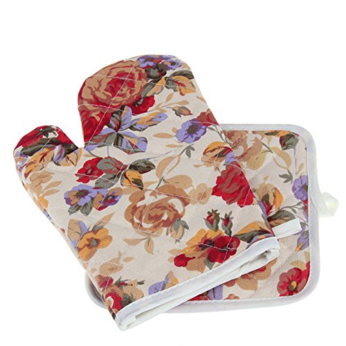 Fantastic Job Oven Mitt With Quilted Liner Bundle With Matching Hot Pad,Potholders Oven Mitts Gloves Set Of 2(1 Pair)Color Send Randomly