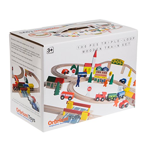 -. Title : 100-Piece Orbrium Toys Triple-Loop Wooden Train Set Fits Thomas Brio Chuggington
