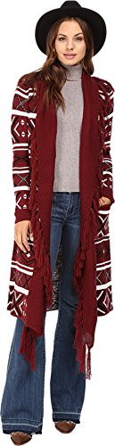 -. Title : Jack by BB Dakota Women's Maribeth Intarsia P.R.Inted Maxi Sweater Cardigan with Fringe