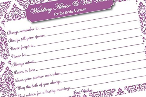 Wedding Advice and Well Wishes - Bridal Shower - Wedding - Purple Damask (50-cards)
