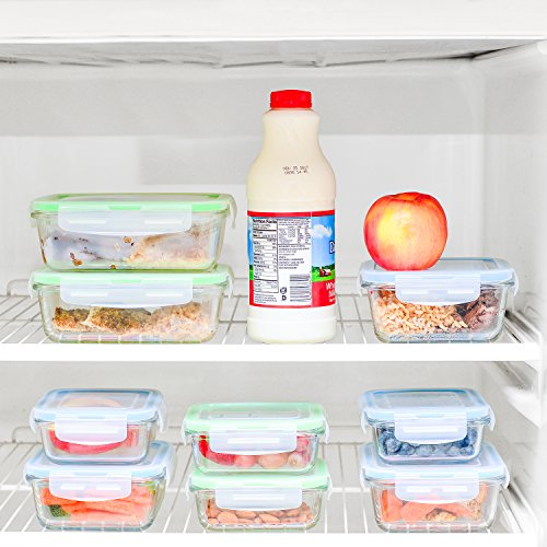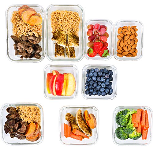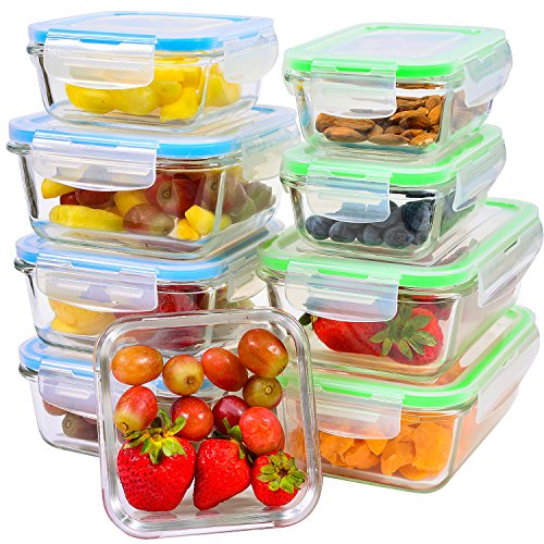 Glass Storage Containers with Lids - Glass Food Storage Meal Prep Containers - Glass Lunch Container Set [9-Pack]