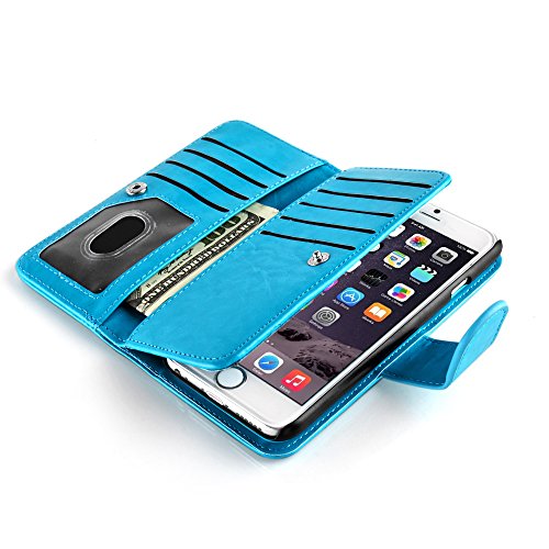 TNP iPhone 6s Plus Wallet Case (Blue) - Flip Synthetic Leather Wallet Pocket Case 2-In-1 Magnetic Detachable Back Cover with Built-in 9 Card Slots for Apple iPhone 6S Plus iPhone 6 Plus 5.5" Devices