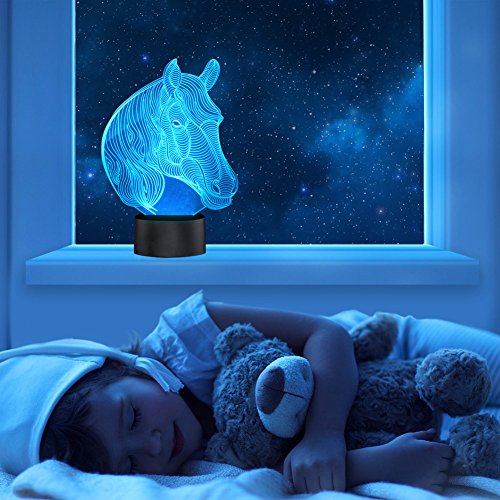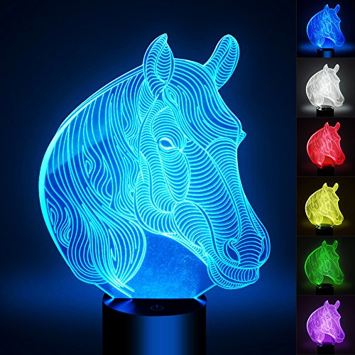 Horse 3D Optical LED Illusion Lamp, YKL World 7 Color Change Touch Switch Art Sculpture Lights Desk Table Night Light Awesome Gift(Stallion)