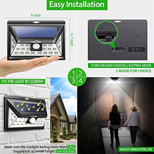 Litom SOLAR LIGHTS OUTDOOR 24 LEDs, Super Bright Motion Sensor Lights with Wide Angle Illumination, Wireless Waterproof Security Lights for Wall, Driveway, Patio, Yard, Garden
