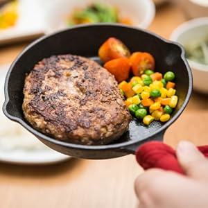 アウトドアだけじゃもったいない!ハンバーグやステーキなどもスキレットのままテーブルにサーブすればお家がレストランのよう!アツアツのまま食べれるなんてとっても贅沢です。
