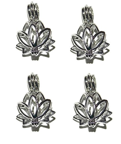 4 Pack of Lotus Blossom Bead Cage - Old School Geekery Brand Jewelry Making Supplies - Hollow Silver Plated Bead Cage Pendant