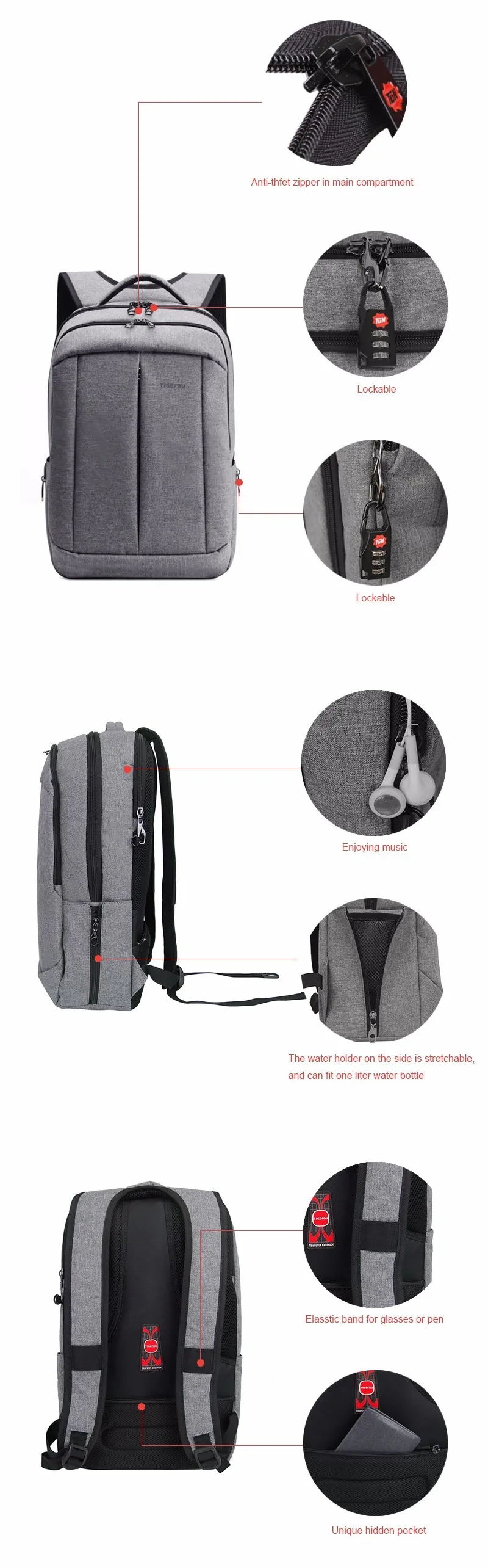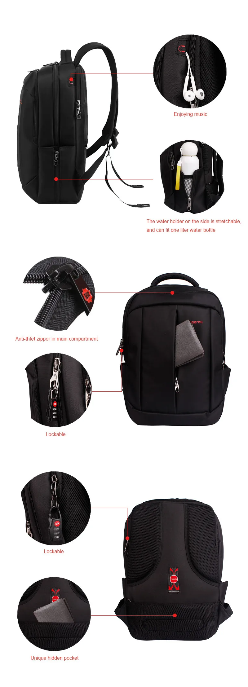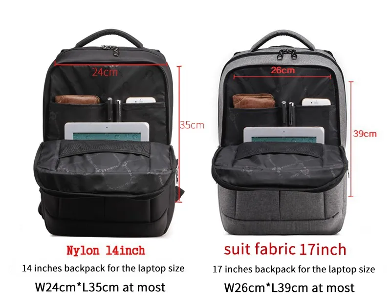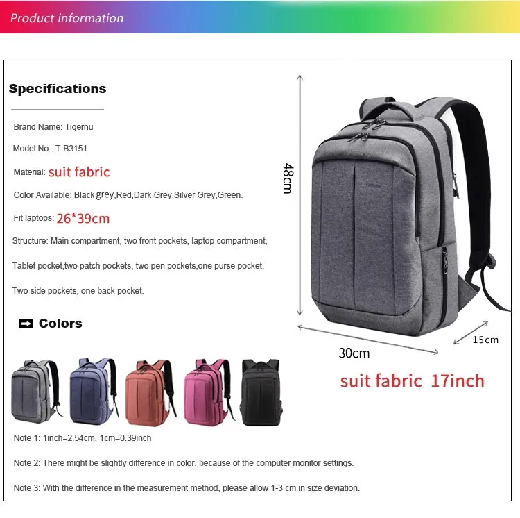 NOTE 1 :T-B3151 backpack 17inch is advanced suit fabric material,Laptop compartment size:26*39cm
