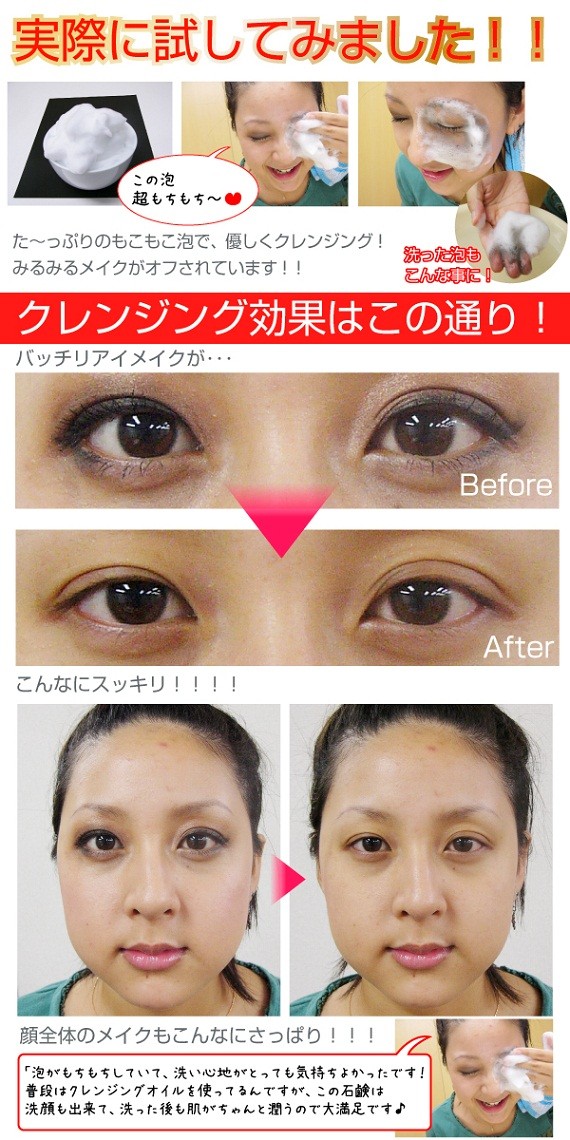 | 成分 | カリ含有石けん素地、ソルビトール、ヤシ脂肪酸、ベントナイト、コカミドプロビルベタイン、グリセリン、水、エチドロン酸4Na、ペンテト酸5Na、酸化チタン、加水シルク、加水コンキオリン、ダイズエキス、ハチミツ、コメヌカエキス、ユキノシタエキス、シャクヤクエキス、甘草エキス、ヒアルロン酸Na、加水コラーゲン、酸化鉄、BG、エタノール、グリチルリチン酸2K |