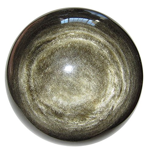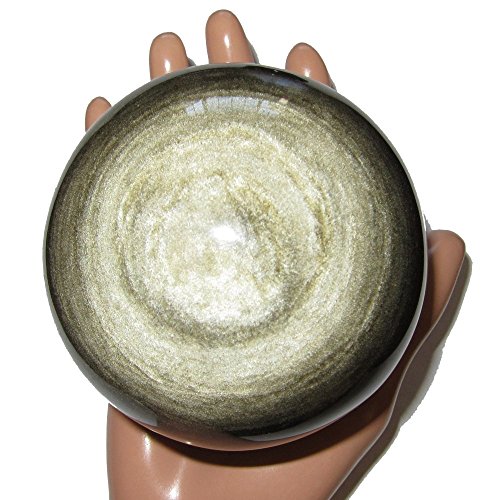 Your large and deluxe sphere is made from obsidian, which is volcanic glass. It appears black in normal lighting, with some white dimples and snowflake markings natural to obsidian. When placed in direct sunlight or very bright lighting, the sphere reveals wonderful gold sheen sparkles. One of a kind protective sphere hand picked by Satin Crystals for you, in a hard to get jumbo size. Receive this exact stone pictured when you order from Satin Crystals.