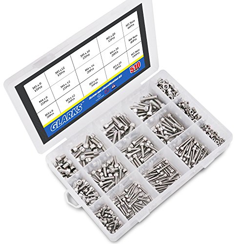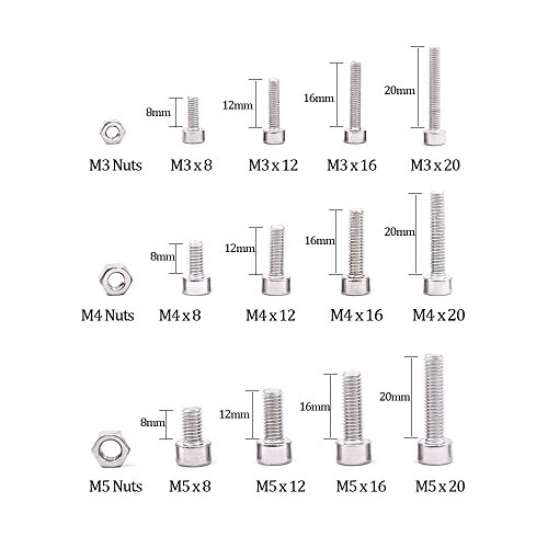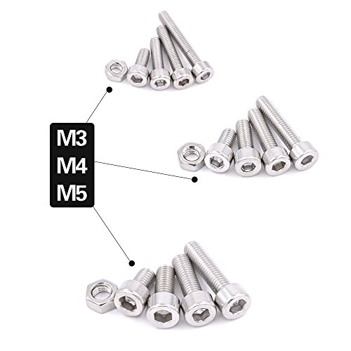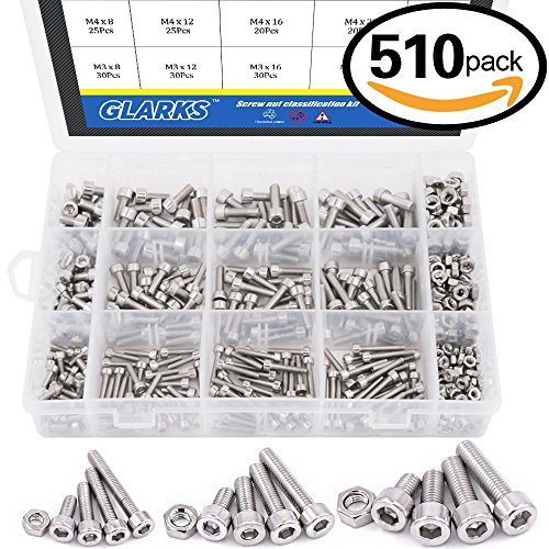Glarks 510Pcs M3 M4 M5 304 Stainless Steel Hex Socket Head Cap Screws With Nuts Assortment Kit