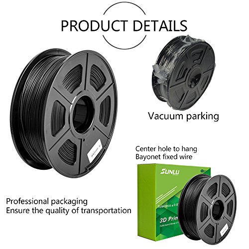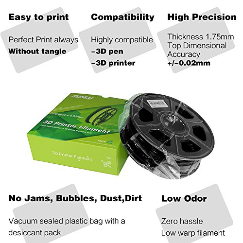 3D Printer Filament PLA Black-PLA Filament 1.75 mm SUNLU,Low Odor Dimensional Accuracy +/- 0.02 mm 3D Printing Filament,2.2 LBS (1KG) Spool 3D Printer Filament for 3D Printers & 3D Pens,Black