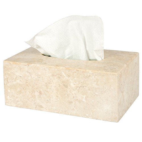 Creative Home 33055 Genuine Champagne Marble Stone Rectangular Tissue Box Holder Cover