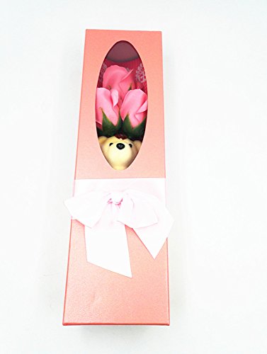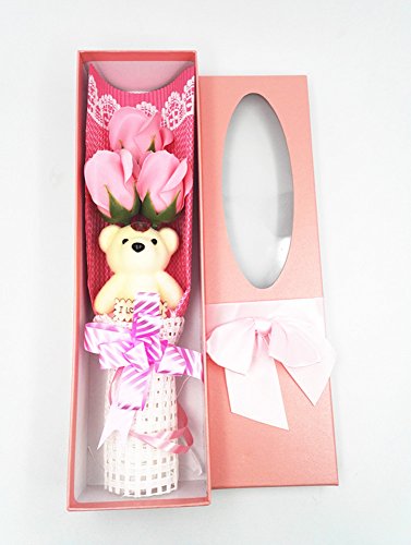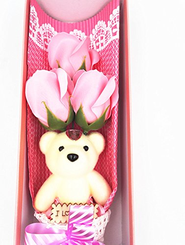 - Package:3pcs plant essential oil soap pink rose flower and 1pc cute bear doll inside a gift box.