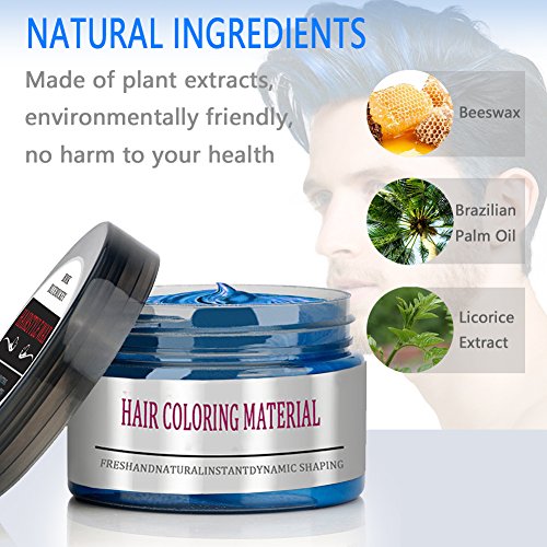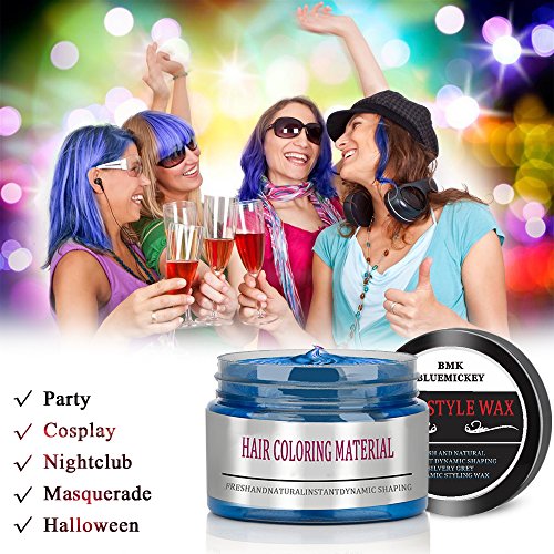 BMK Blue Color Hair Wax Matte Hairstyle Pomades Disposable Temporary Modeling Natural Hair Styling Wax for Party, Cosplay, Nightclub, Masquerad,...