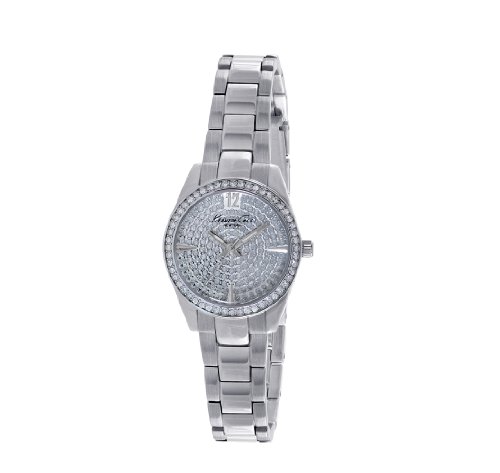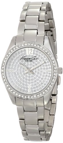 ReleaseDate : 2014-01-25 Studio : Kenneth Cole New York Publisher : Kenneth Cole New York Binding : Watch Product Description Dress watch, Japanese quartz movement, Polished silver-tone hands with luminous accents, Polished silver-tone sweep seconds, Applied polished silver-tone Arabic twelve, Applied polished silver-tone triangular hour markers at three, six and nine o'clock positions, Silver-tone pave crystal dial, Brushed silver-tone stainless steel bracelet with polished inserts, adjustable links and push-button-clasp, Polished silver-tone stainless steel bezel encrusted with crystals, Polished silver-tone stainless steel round case, Textured steel crown, Stainless steel caseback, Mineral crystal with black logo, 3 ATM (30 meters/100 feet water resistant) 0