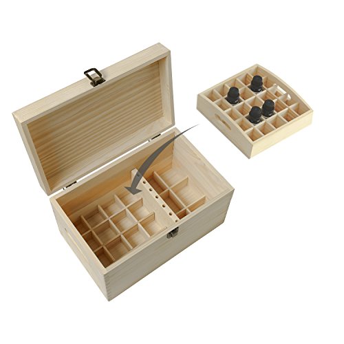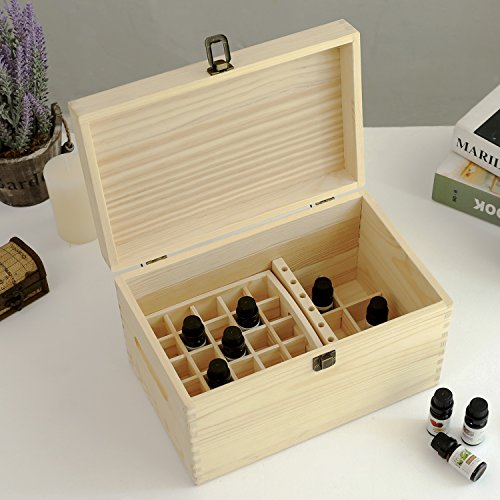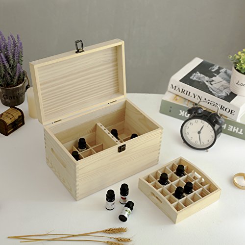 47 Bottles Essential Oil Wooden Natural Pine Storage Chest , 2 Tier Cosmetic Supply Case with Latch Lock