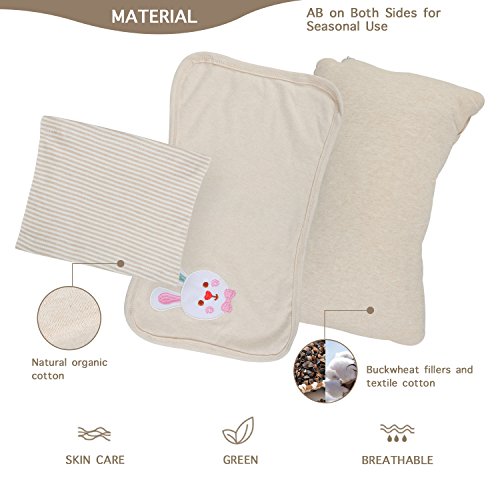 ✔HEAD SHAPING - STABILITY & SAFE, BREATHABLE, SNUGLY - Our toddler pillow (15.3"x 8,7") is designed for the perfect balance between flat & fluffy, and provide optimal support for your little one's head, neck & spine. The buckwheat hulls with mobility, which prevents flat head syndrome, when baby sleep on it, buckwheat will adapt to the weight of the head, pillow forming the head curve, automatic stereotypes.