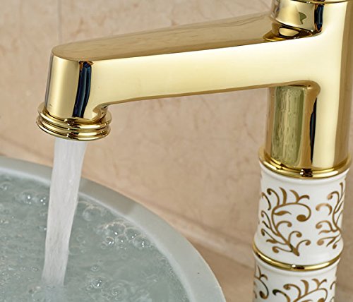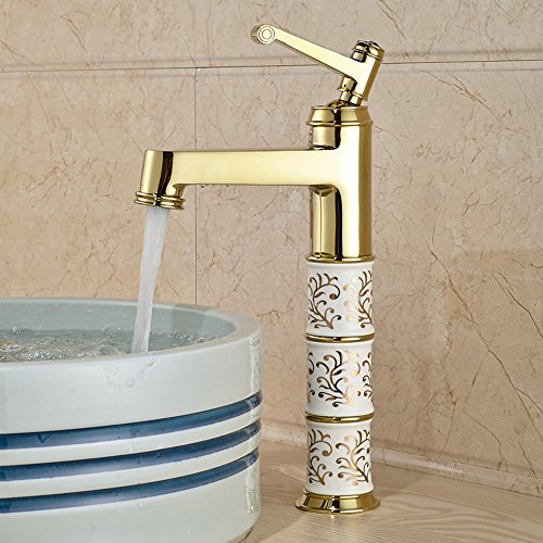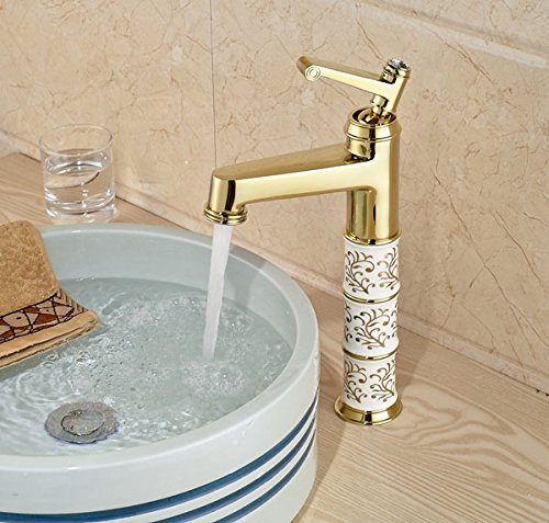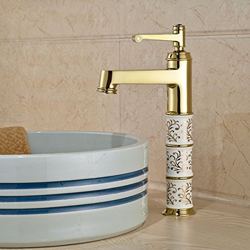 Senlesen Deck Mount Bathroom Vessel Sink Faucet Single Lever Control Tall Spout Mixer Taps,Gold Finish