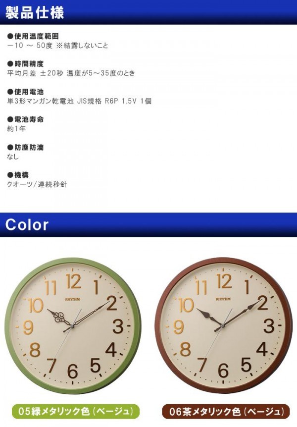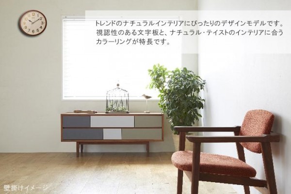 視認性のある文字板と、ナチュラルテイストのインテリアに合うカラーリングが特長です。落ちついた色合いのクオーツ時計です。 |