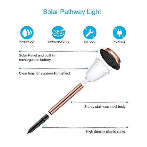 - SOLAR POWERED & AUTO OPERATION: With a solar panel on the top and a rechargeable battery, this Solar Path Lighting turns on automatically and works for 8 hours at night if fully charged under sunlight during the day.