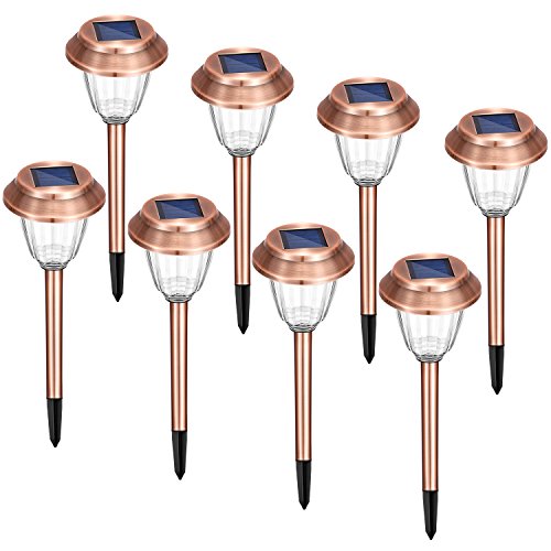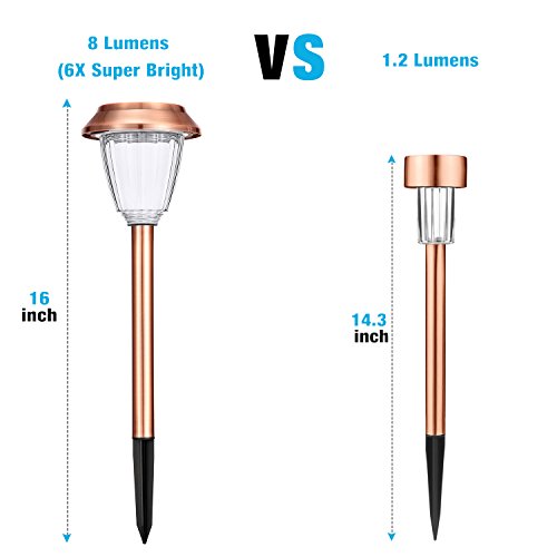 Solar Pathway Lights, Oak Leaf LED Landscape Solar Lights Outdoor Garden Lighting 6X Super Bright (8 Lumens) IP44 Waterproof Low Voltage Stainless Steel for Path Patio Yard Lawn Deck, 8-Pack, Copper