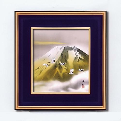 赤富士には開運力があり、金運を高めるとされるよりよい縁起物です。旭日の黎明を浴びて金色に輝く金富士の姿は、赤富士以上にめったに見られないことから、運良く見ることが出来た者には限りない吉事が訪れるといわれています。特に金運財運を高めると崇められ、富士信仰とあいまって、人々の憧れの象徴としてもてはやされてきました。お手持ちの色紙等と入れ替えが出来ます。 |