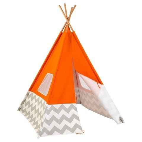 This teepee will add some real excitement to your child's bedroom or playroom. It's easy to assemble and stands over 3 and half feet tall. A mesh window will allow for parents to see in, and children to see out. The fun colors and chevron design make a decorative statement in the room.Feature