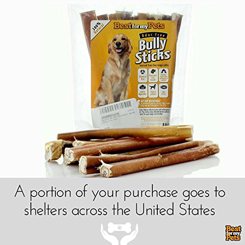 -. Feature : ALL-NATURAL HEALTHY TREAT: natural alternative to rawhide, our Bully Sticks made from one-ingredient, no unhealthy additives, chemicals, hormones or preservatives added. Grain-free, low-fat and protein-rich. / FULLY DIGESTIBLE AND SAFE: All Best For My Pets dog chews are USDA/FDA-approved, hand inspected and manufactured through a multi-step slow process that eliminates all bacteria and odor to assurance the highest quality standards. / SUPPORTS DENTAL HEALTH: Bully Sticks are a natural dog dental chews that remove tartar and plaque, keeping dogs' teeth and gums clean and strong. / LONG-LASTING TASTY TREAT: Chewing provides stress relief and sense of comfort for dogs. Bully Sticks allow dogs to chew on a delicious beef flavor treat for a long time, while you protect your furniture and shoes. / WE LOVE RESCUE DOGS! Buy one or more bags of our bully sticks and help us donate to dog shelters throughout the U.S.A.