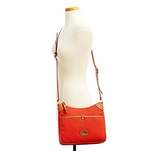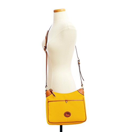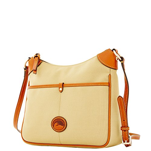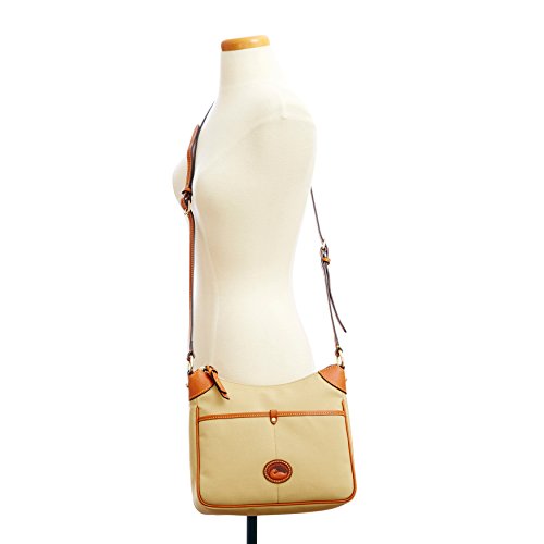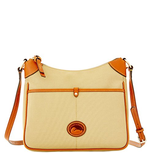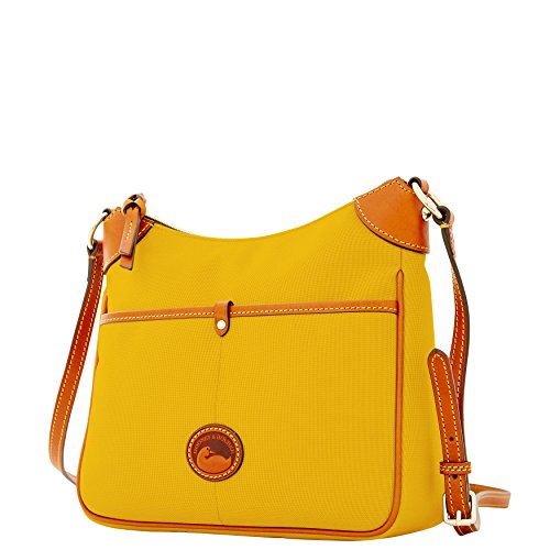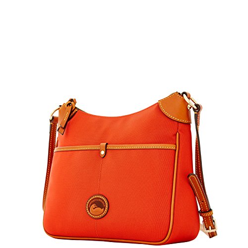 H 8.5" x W 3.5" x L 10.75" Two outside pockets. One inside zip pocket. Two inside pockets. Cell phone pocket. Inside key hook. Adjustable strap. Strap drop length: 26.50". Lined. Zipper closure.