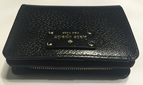 -. Brand : kate spade new york -. Color : Black -. Department : womens -. EAN : 0098689870946 -. Feature : Bagity is the exclusive authorized seller for this bundled set of the newest style Kate Spade Wellesley Black Cara with a diamond embossed polka dot ribbon bow Bagity Gift Box! / This is the newest just released style with color matching black stitching and black interior leather! Textured boarskin leather with polished hardware, Zip around portion with 2 accordion style openings / Zip around style wallet with KS nameplate on front and open slip pocket on back / Leather and fabric interior with 4 card slots, 4 multifunction slots, clear ID slot and and full length bill compartment / Measures approximately 5" (L) x 4" (H) x 1.25" (W) Comes in a beautiful trademarked Bagity Gift Box -. Model : WLRU1745 -. PackageQuantity : 2 -. ProductGroup : Shoes -. ProductTypeName : HANDBAG -. Title : Kate Spade New York Wellesley Black/Black Cara Leather Clutch Wallet WLRU1745 with Bagity Gift Box -. UPC : 098689870946 Boarskin textured leather with polished hardware. This new style Kate Spade bifold wallet is accented with the Kate Spade name plate on the front and features a slip pocket on the back. There is top stitch detailing throughout. It's divided into two sections - a zip around with two accordion style openings lined in red Kate Spade custom fabric. And then a portion that snaps closed and features a clear ID slot, 4 card slots, 4 multifunction slots, and a full length bill compartment that runs along the top. The interior is black leather with the same print Kate Spade fabric. Overall measurements of approximately 5" (L) x 4" (H) x 1.25" (W). Comes presented in a beautiful diamond embossed polka dot ribbon bow Bagity trademarked Gift Box!