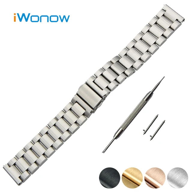| [해외]스테인레스 빠른 릴리스 시계 밴드 22 미리메터 조약돌 시간/스틸 스트랩 손목 벨트 팔찌 블랙 골드 실버 + 봄 바 + 도구 |