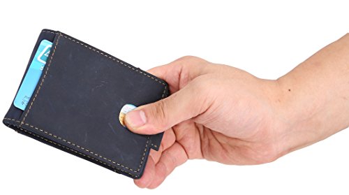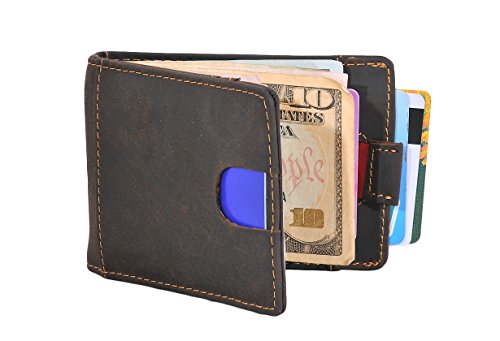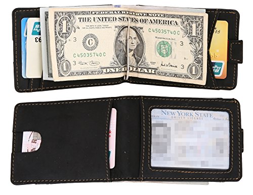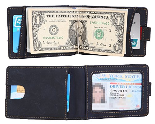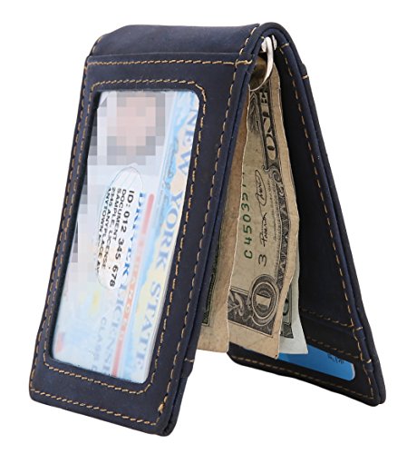 -. Feature : Material: 100% Top layer genuine cowhide crazy horse leather, breathable, soft and comfortable. The lining was made of polyester, smooth and durable. / Size: 10.5cm*7.5cm*0.8cm, great fit for use, easy for carrying in your front or back pockets. Capacity: One ID display window, 6 Card Slots and one strong money clip. / Ultra Slim: The wallet is designed to be ultra slim, only 0.8cm thick. It is easy to slide into your pockets and easy for carrying. / RFID Blocking: RFID Blocking designed lining keeps your vital information Secure. Be safe and protected from Electronic Pick pocketing. / 1 Year Qaulity Guarantee: Any quality problem, we will refund or exchange the product for you.