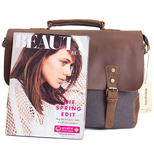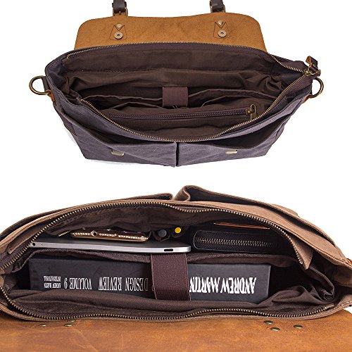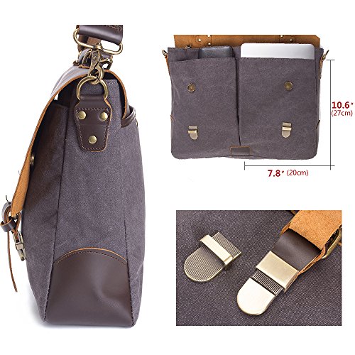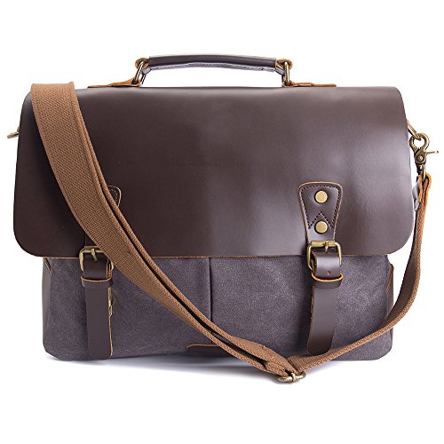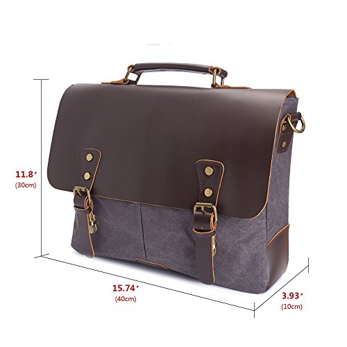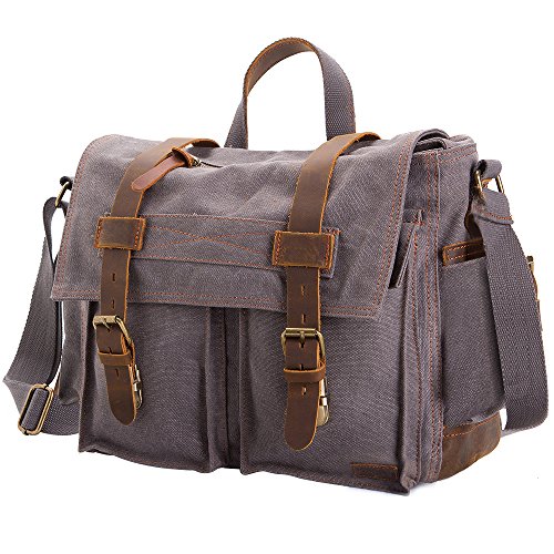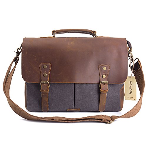 -. Brand : WalkingToSky -. Department : unisex-adult (lage only) -. Feature : Grey vintage Canvas Real Leather Shoulder Messenger Bag for laptop 15 inch for men women unisex / Flat top handle and 2 inch(4.5cm) Widened and Thicked adjustable shoulder strap, 55" shoulder drop / Bronze easy-open push button closure. / Shockproof Laptop Sleeve and new structure of inner compartments to protect your laptop efficiently / WITH ONE YEAR'S WARRANTY: Any problem of our bags please feel free to email us via your Amazon order detail page contact seller. -. ProductGroup : Apparel -. ProductTypeName : LAGE -. Title : WalkingToSky Grey Messenger Bag, Casual Vintage Leather Canvas Shoulder Bag Briefcase for Men Women