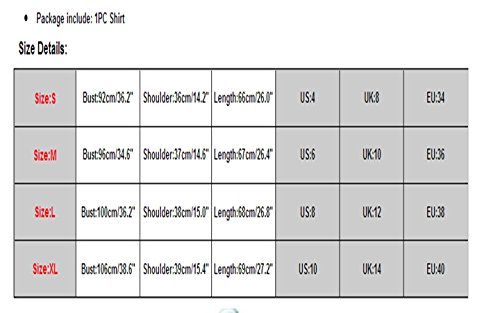 Binding : Apparel Product Description Specifications: Size Details: Size:S-Bust:92cm/36.2",Shoulder:36cm/14.2",Length:66cm/26.0" Size:M-Bust:96cm/34.6",Shoulder:37cm/14.6",Length:67cm/26.4" Size:L-Bust:100cm/36.2",Shoulder:38cm/15.0", Length:68cm/26.8" Size:XL-Bust:106cm/38.6",Shoulder:39cm/15.4",Length:69cm/27.2"