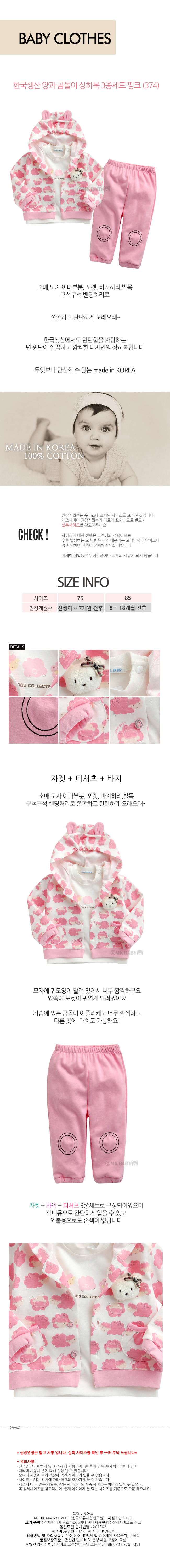 South Korea three-piece set pink sheep bears