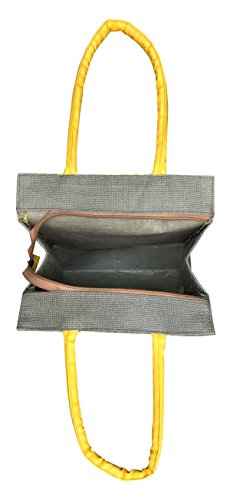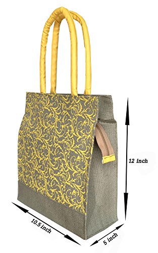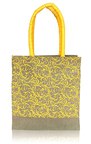 Foonty printed Laminated Natural jute tote bag with faux leather handles 10.5"W12"H