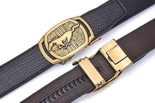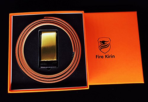 | Fire Kirin Men's Leather Ratchet Dress Belt- Length is Adjustable - Delicate Gift Box |