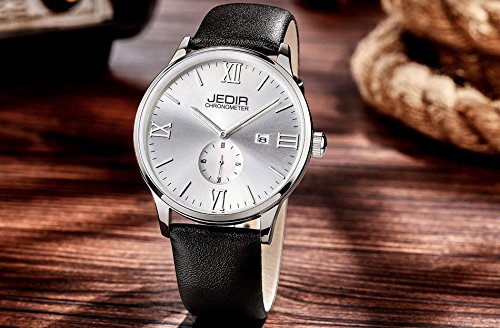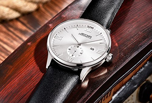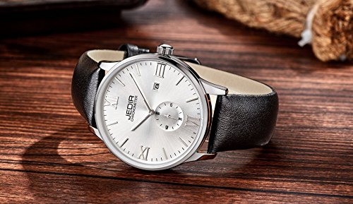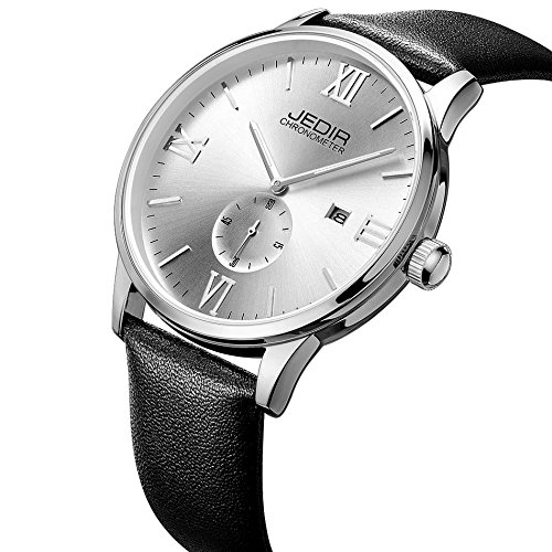 -. Title : GuTe出品 メンズ クォーツ 腕時計 革バンド 日付 クロノグラフ ミニマリズム シルバー