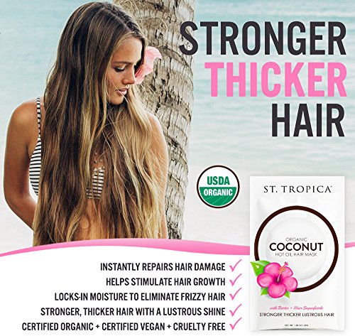 TOTAL 360 CARE FOR YOUR HAIR: Our amazing organic hair mask is based around the king of all hair oils: organic, raw, unrefined, and cold pressed coconut oil. We then infuse that base with the most time-tested, deep conditioning hair superfoods like organic biotin, amla, horsetail, green tea, and hibiscus. No other restorative hair mask even comes close to the kind of radical results you will see with your St. Tropica hair treatment mask!