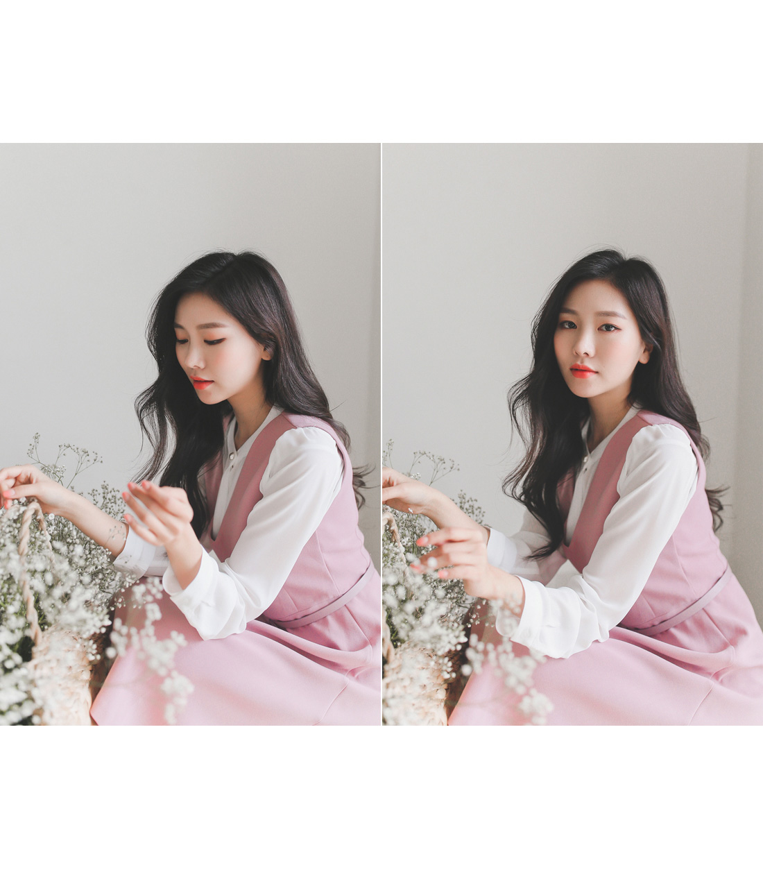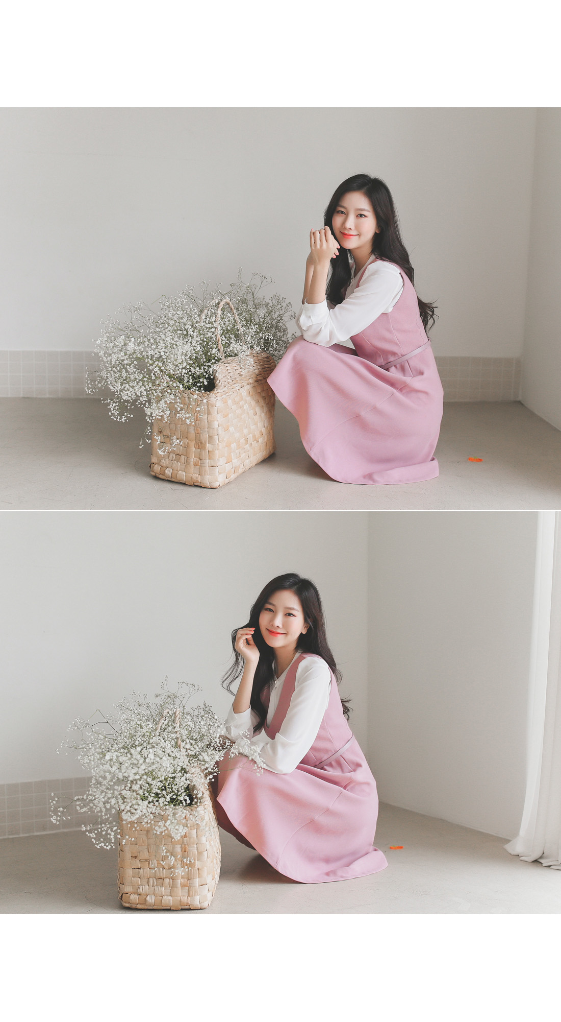 허리 부분은 살짝 잡아주고! 상의와 스커트는